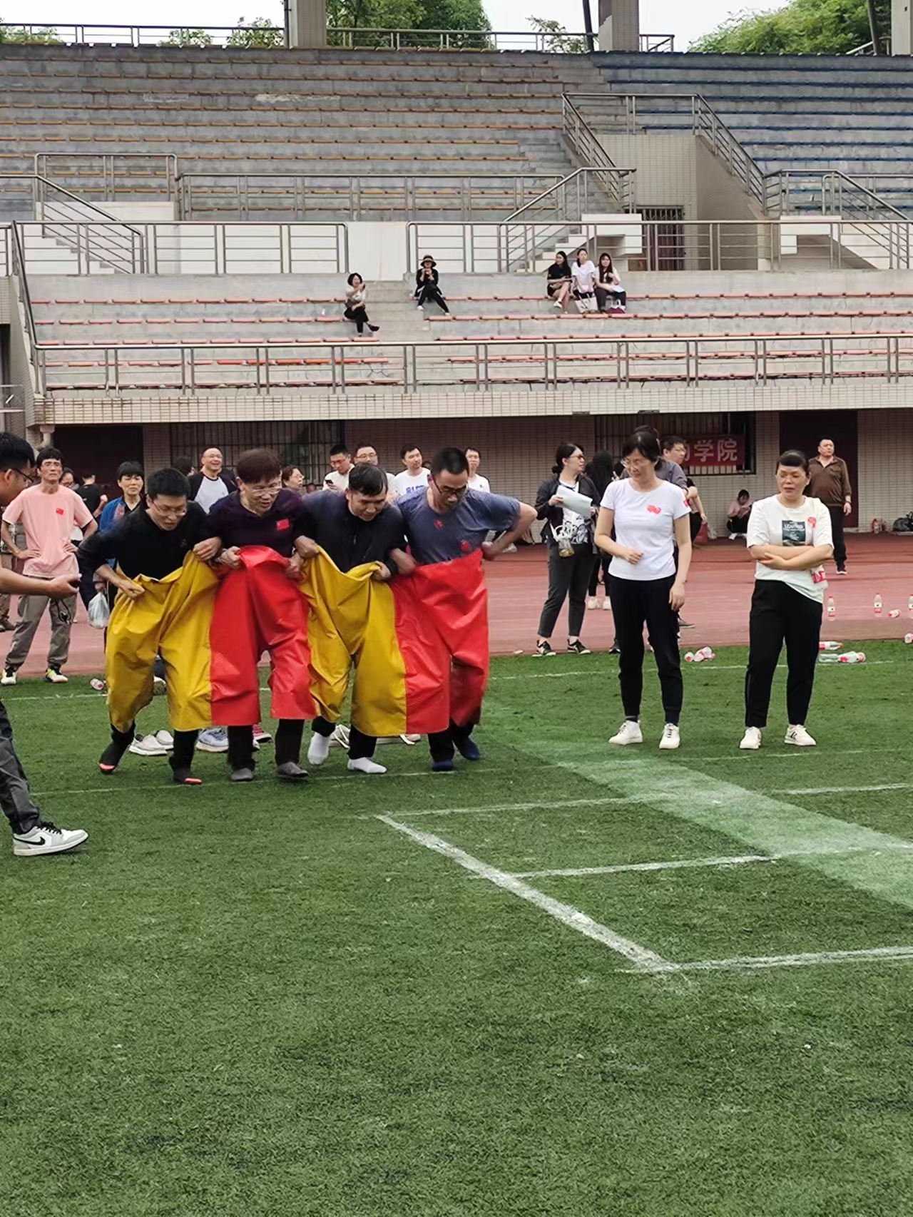 为了推动全民健身运动,增强教职工的身体素质,增进教职工之间的交流与协作,激励广大教职工以健康、积极、向上的精神面貌迎接党的二十大胜利召开,校工会于5月24日下午在云塘校区田径场举办“喜迎党的二十大奋进新征程”教职工趣味运动会。马克思主义学院组织20名教职工参加了陆地冰壶、鸿运彩球、携手同行、趣味连体裤、三方拔河等全部五个竞赛项目。我院运动员们团结协作、奋力拼搏,在三方拔河项目中获得第二名,在陆地冰壶项目中获得第三名,最终获得了全校总分并列第十名的较好成绩。