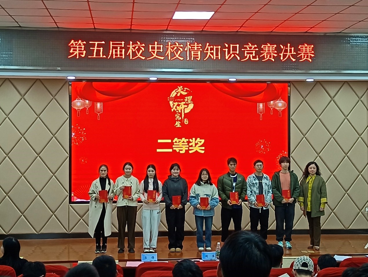 初赛时,基于2024级73名同学的共同努力,马克思主义学院以第三名的成绩进入决赛。而在决赛过程中,马克思主义学院代表队不负众望,她们准备充分、从容不迫,无论是必答环节的稳扎稳打,还是抢答环节的果敢出击,都彰显出扎实的功底与出色的应变能力,最终收获团体二等奖的好成绩。