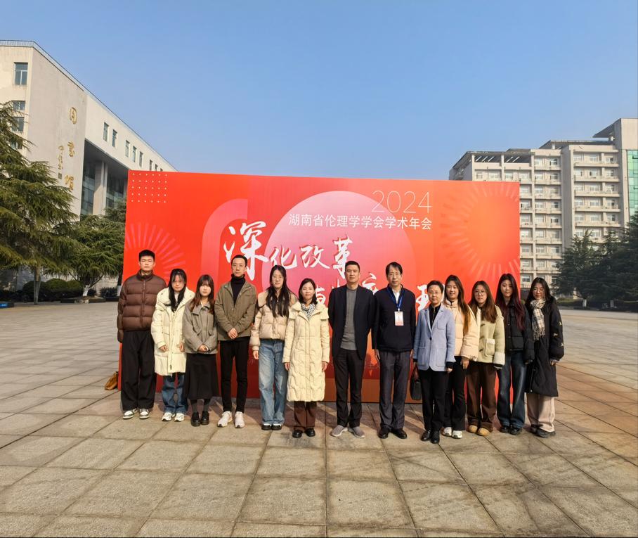 2025年1月4日,由湖南省伦理学学会主办,湖南财政经济学院马克思主义学院、科研处承办的“2024年湖南省伦理学学会学术年会暨深化改革与制度伦理研讨会”在湖南财政经济学院隆重举行,省内外近200名专家学者齐聚湖南财政经济学院主校区,围绕“深化改革与制度伦理”进行深入交流探讨。我院党委书记陈万球,副院长钟芙蓉、文贵全,鲁芳教授和9名研究生参加了本次学术年会。