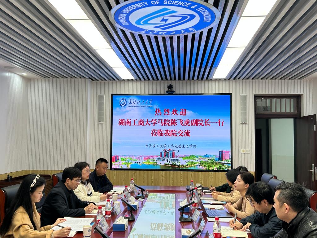2025年3月13日上午,湖南工商大学马克思主义学院副院长陈飞虎、习近平新时代中国特色社会主义思想系主任李卓琦、马克思主义系主任王智平、智慧党史党建系主任贺治方等一行人莅临我院开展关于本科教学评估工作的调研交流。我院副院长钟芙蓉主持交流会,副院长文贵全及相关教研室负责人等参加会议。