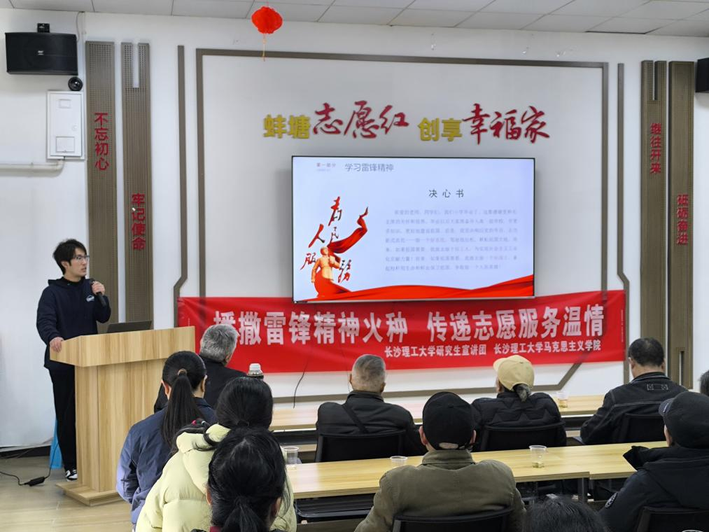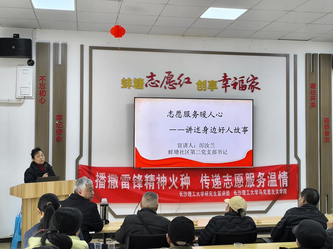 3月16日,威廉体育williamhill研究生宣讲团走进长沙市蚌塘社区,与社区第二党支部联合举办“撒播雷锋精神火种 传递志愿服务温情”主题活动。通过情景剧演绎、雷锋精神宣讲与实践分享三大环节,深化校社联动志愿服务新路径。