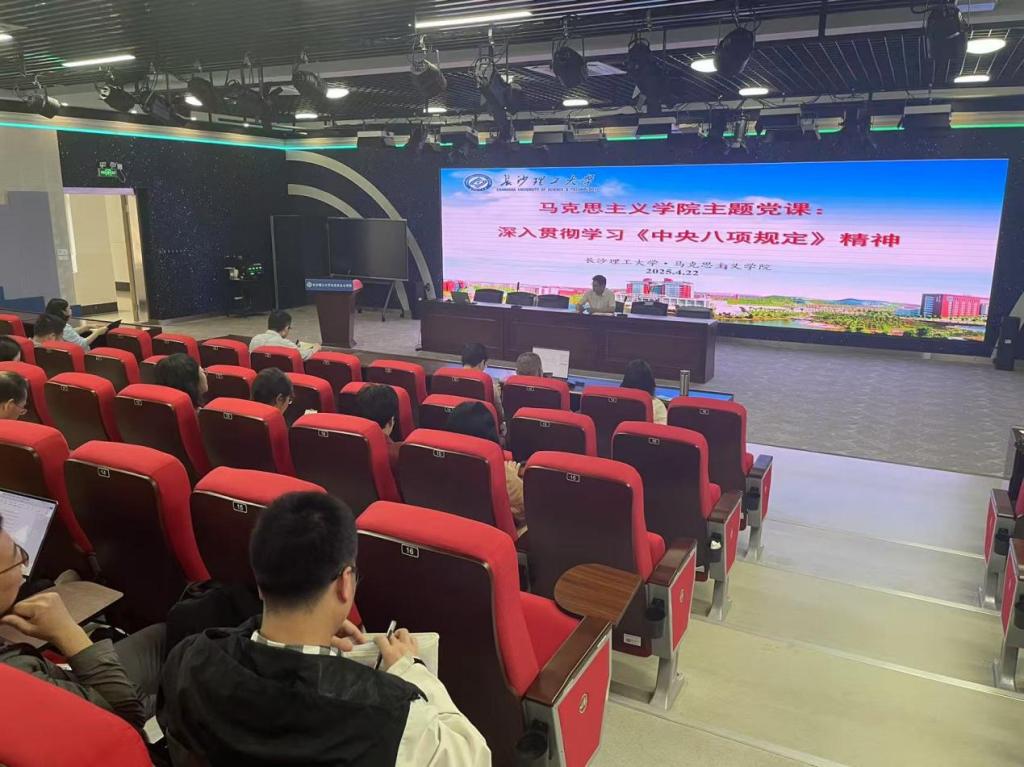 2025年4月22日,威廉体育williamhill马克思主义学院党委在文科楼B300开展了一场主题党课,深入贯彻学习中央八项规定精神,重温中央八项规定及实施细则。学院全体教师参加此次党课,由陈万球书记主讲。