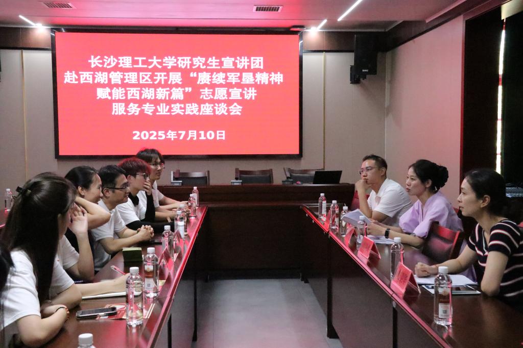 随后,实践团与西湖管理区组织宣传统战部、文旅体事务中心等相关负责人开展座谈交流。双方就如何进一步深化合作、开展军垦文化调研、军垦精神宣讲等进行了深入探讨。双方将持续深化在课程开发、师资共享、学生研学等方面的合作,将高校的理论研究优势与博物馆的实践场景相结合,进一步推动“大思政课”综合改革,共同打造具有湖湘特色的思政教育品牌。