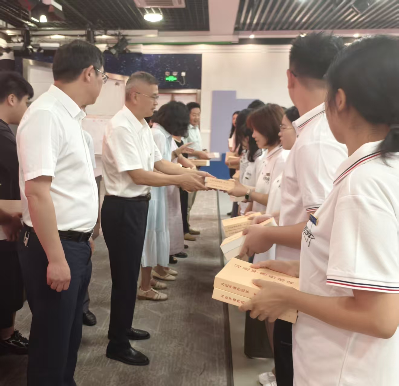 典礼最后举行了赠书仪式,学院领导及教授代表为新生赠送经典著作。院长张明海勉励大家要读原著、学原文、悟原理,夯实理论根基,争做党的创新理论时代潮流中的弄潮儿,坚持做到学理论、用理论、宣传理论。