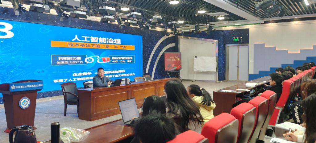 2025年12月6日上午8:00-9.40,学院邀请国防科技大学周长峰副教授担任主讲,以百年变局与中国担当为主题在云塘校区文科楼 B300 报告厅作了一场结合时政,具有深刻意义的通识教育讲座。