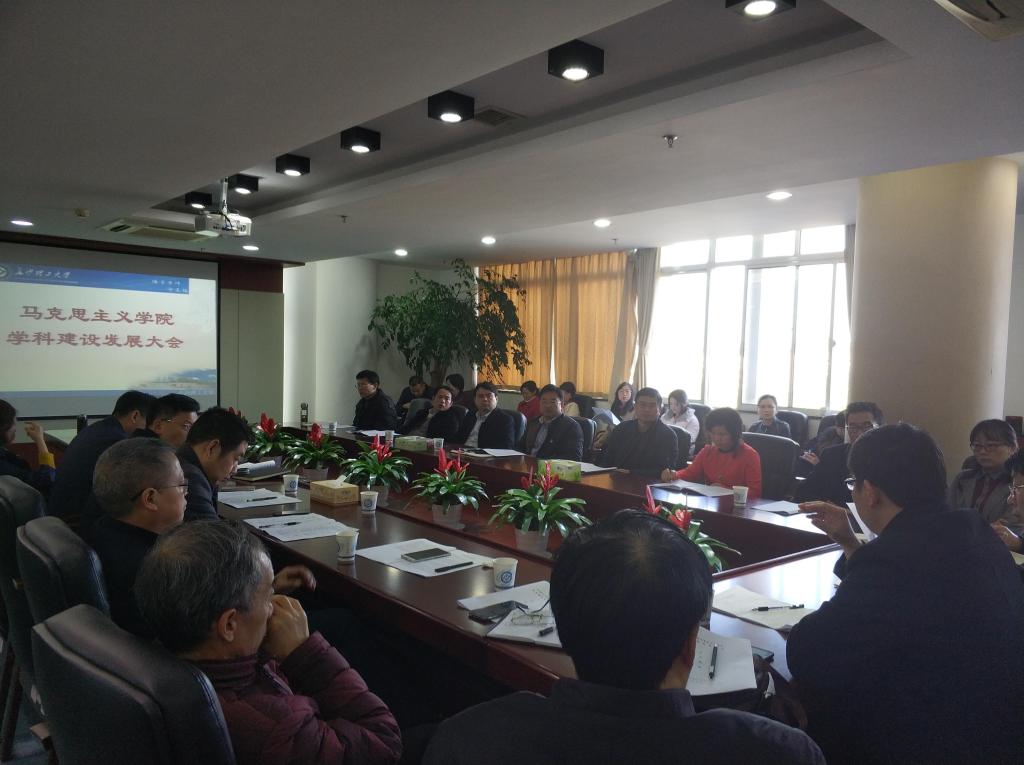 2018年3月10日上午9时,马克思主义学院在云塘校区一办五会议室召开了学院学科建设发展大会。校党委邹宏如副书记,马院全体院领导、学科团队成员,学校职能部门与部分兄弟学院的代表共50余人出席了会议,会议由马克思主义学院院长陈万球主持。