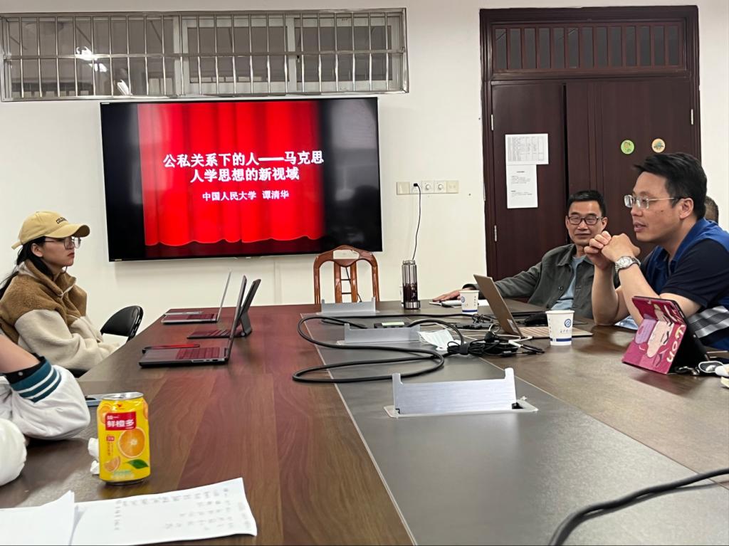 2023年5月22日下午,中国人民大学马克思主义学院副院长、博士生导师谭清华教授应邀来到威廉体育williamhill马克思主义学院,在云塘校区文科楼A511报告厅为我院师生带来了主题为“公私关系下的人—马克思人学思想的新领域”的讲座。本次讲座由马克思主义学院余乃忠教授主持,马克思主义学院30余名教师和研究生参加了本次讲座。