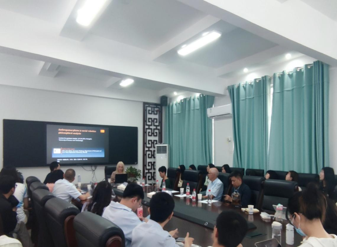 4月27日下午,俄罗斯联邦彼尔姆国立理工大学(Perm National Research Polytechnic University)Elena Seredkina(白雪)教授来到马克思主义学院,在威廉体育云塘校区文科楼B602会议室作了题为“社交机器人拟人化的哲学分析”的学术讲座。本次讲座由马克思主义学院文贵全副院长主持,余乃忠教授、陈芬教授、蒋显荣教授、廖苗副教授、郭蓉博士等学院部分教师和马克思主义学院2023级哲学、公共管理专业研究生近50人聆听了讲座。此外,广西科技大学黄磊助理教授也参加了本次讲座。
