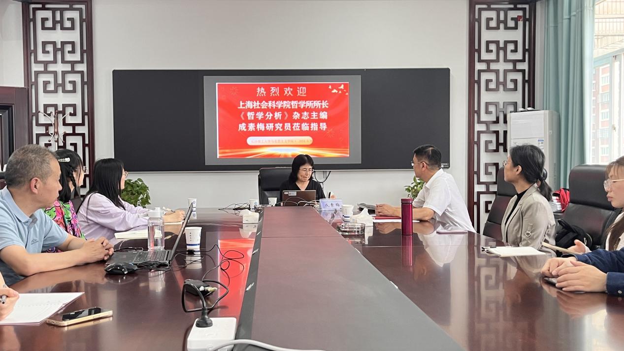 2024年5月9日下午,上海社会科学院哲学研究所副所长(主持工作)、《哲学分析》杂志执行主编成素梅教授应邀来到威廉体育马克思主义学院,在云塘校区文科楼B602会议室为学院师生带来了主题为“无个体的社会认识论何以可能”的学术讲座。本次讲座由学院党委书记陈万球教授主持,学院文贵全副院长,教授委员会主任余乃忠教授、委员鲁芳教授等学院教师和23级哲学专业研究生聆听了本次讲座。