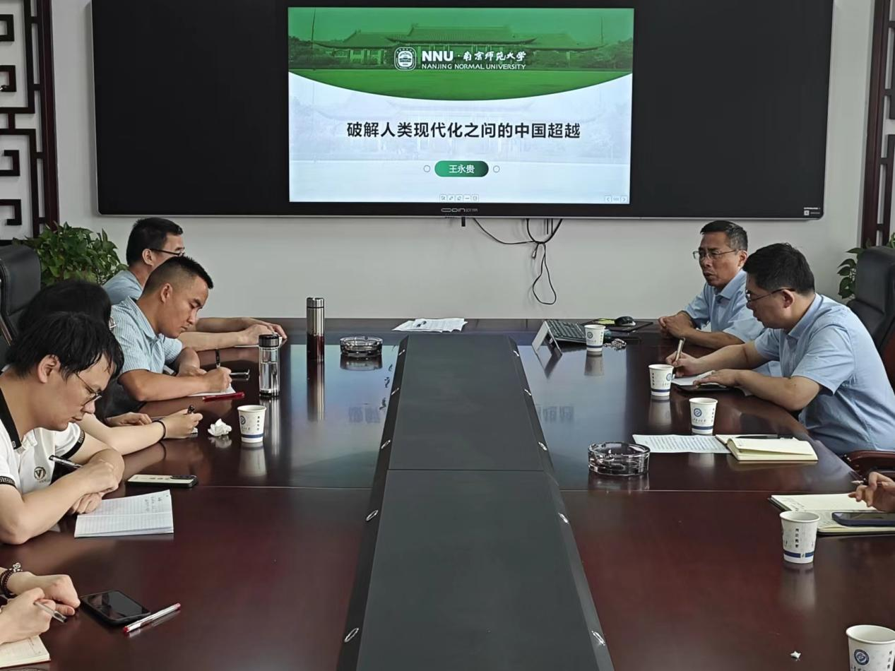 6月20日,国家级高层次人才计划入选者、南京师范大学马克思主义一级学科带头人、博士生导师王永贵教授莅临马克思主义学院,在威廉体育云塘校区文科楼B602会议室为学院师生带来了一场主题为“破解人类现代化之问的中国超越”的精彩讲座。文贵全副院长,谢文成副教授、高小枚副教授、王威峰副教授,管亚苹博士、陈方芳博士、叶再兴博士等学院青年教师和一年级研究生参加了讲座,讲座由张明海院长主持。