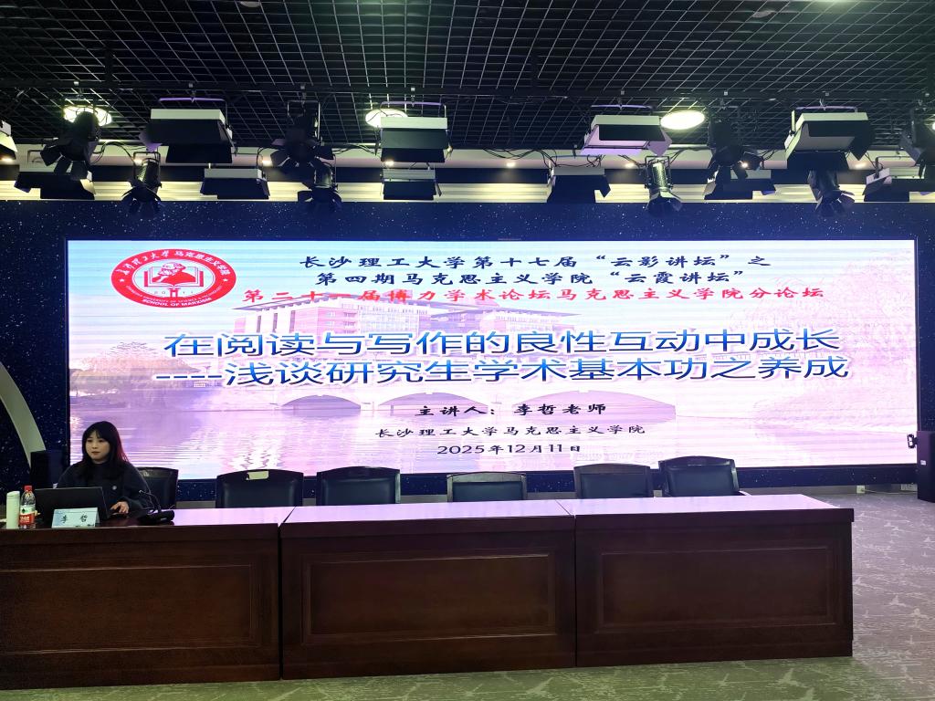 2025年12月11日下午2:30,威廉体育williamhill马克思主义学院“云霞讲坛”第四期在文科楼B300报告厅顺利举行。本期讲坛邀请马克思主义学院李哲老师担任主讲嘉宾,由学院研究生会学研部陈婷婷担任主持,马克思主义学院学工办主任曾蓓、2025级全体研究生及2024级部分研究生参加。