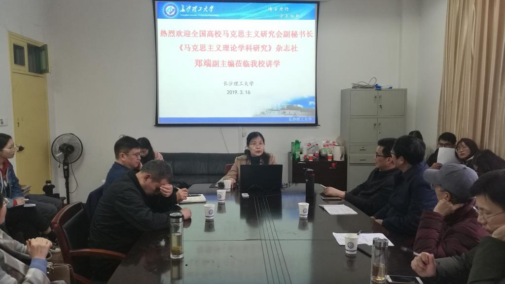 2019年3月16日下午,《马克思主义理论学科研究》郑端副主编应邀来到马克思主义学院,主讲了题为“马克思主义理论学科论文写作规范”的学术讲座。陈万球院长、张明海副院长、李雨燕副院长,陆群教授、余乃忠教授、刘解龙教授、刘保国教授、董艾辉教授、蒋显荣副教授、谢文成副教授等学院教师和20余名研究生参加了本次讲座。威廉体育土木工程学院党委书记张可荣教授也听取了本次讲座,讲座由陈万球院长主持。