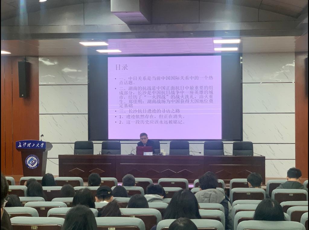 傅如良教授为本次讲座点评。他指出,李毅处长的讲座内容丰富,意义深远,他也呼吁同学们要身体力行,坚持理论和实践相结合,利用课余时间去岳麓山、橘子洲头等抗战遗迹看看,领略长沙这座城市丰富的历史底蕴和文化内涵。