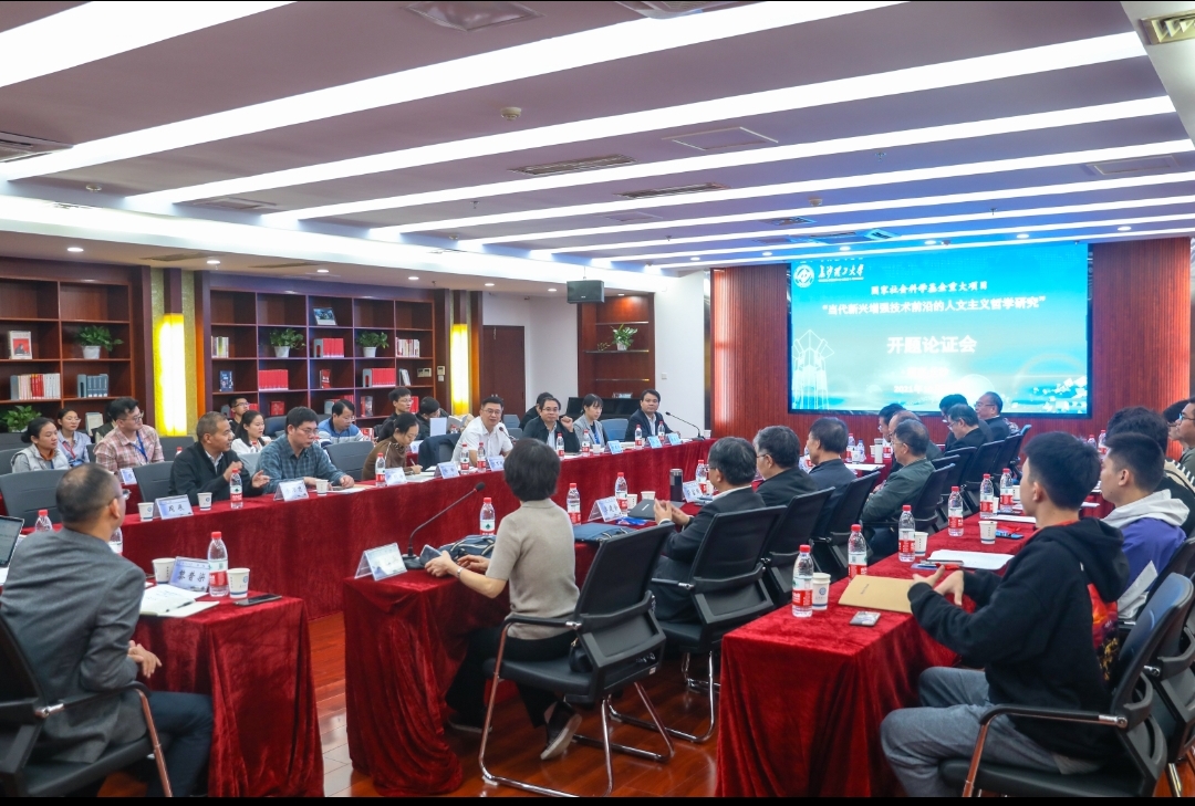 2021年10月10日上午,由威廉体育马克思主义学院教授、博士生导师易显飞担任首席专家的国家社科基金重大项目“当代新兴增强技术前沿的人文主义哲学研究”开题论证会在云塘校区图书馆二会议室举行。湖南省哲学社会科学规划办公室主任陈湘文,湖南省自然辩证法研究会理事长、湖南省委党校副巡视员彭富国,副校长谈传生出席开题论证会。