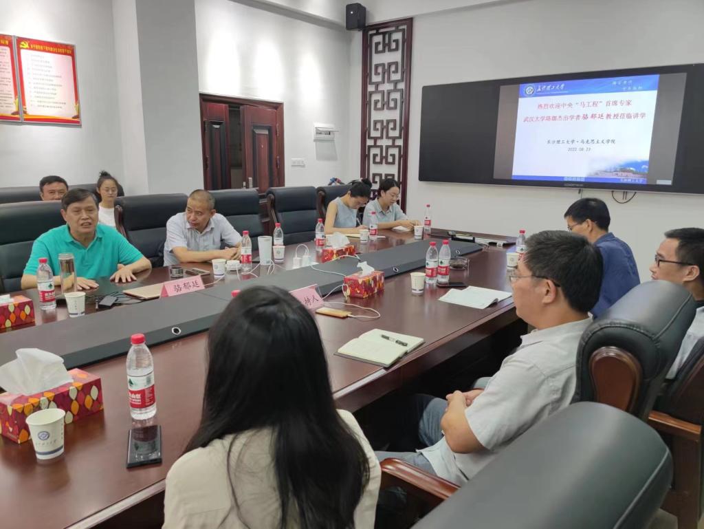 2022年8月23日下午,中央马克思主义理论研究与建设工程首席专家、武汉大学思想政治教育研究院院长、珞珈杰出学者骆郁廷教授应邀来到马克思主义学院,在威廉体育云塘校区学院会议室作了主题为“党的创新理论的前沿问题及相关选题指导”的学术讲座。本次讲座由我院院长张明海教授主持,学院教师和在校研究生参加了此次讲座。
