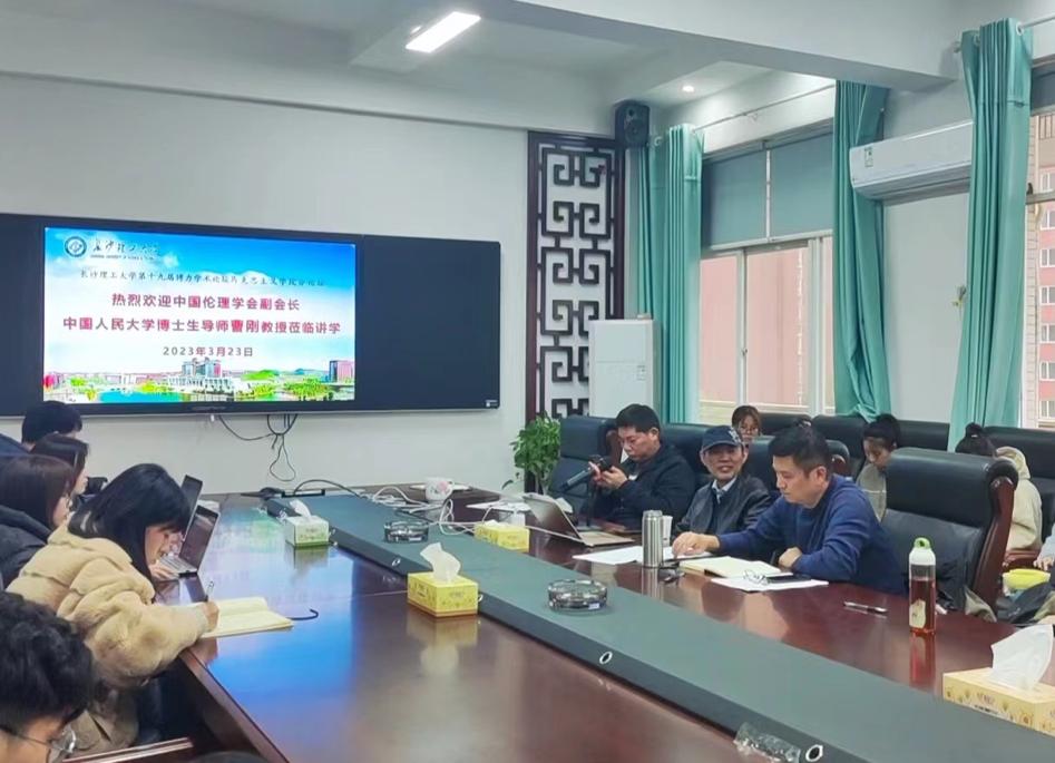 3月23日下午,中国伦理学会副会长、中国人民大学博士生导师曹刚教授应邀来到马克思主义学院,做客威廉体育第十九届博力学术论坛马克思主义学院分论坛,在云塘校区文科楼马克思主义学院会议室作了“关于智能社会的道德想象”的学术讲座。院党委陈万球书记、唐俊副院长、王威峰副院长,陈芬教授、钟芙蓉副教授等学院教师和研究生参加了此次讲座,本次学术论坛由学院院长张明海教授主持。
