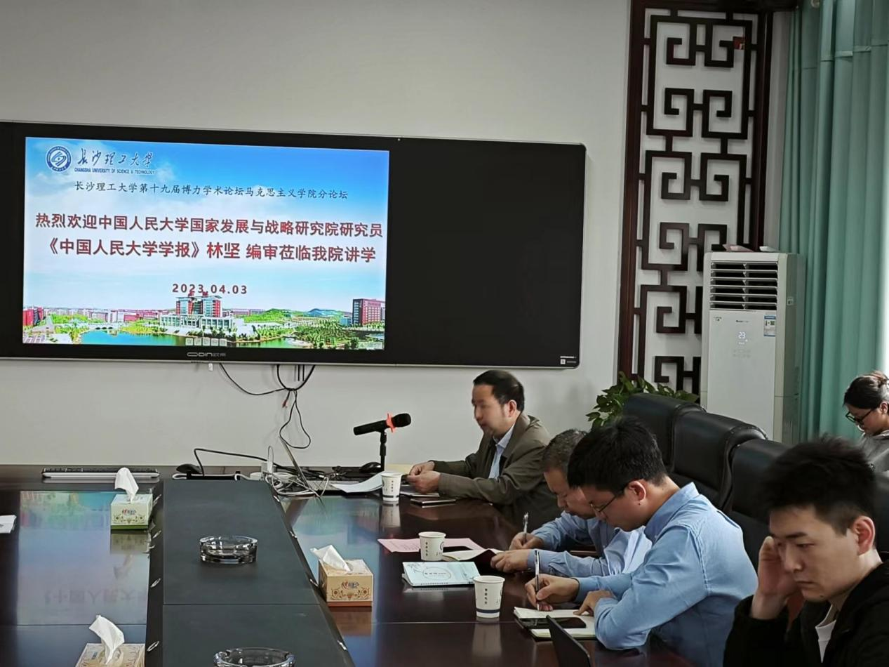 2023年4月3日上午,中国人民大学国家发展与战略研究院研究员、《中国人民大学学报》编审林坚老师应邀来到马克思主义学院,做客威廉体育第十九届博力学术论坛马克思主义学院分论坛,在云塘校区文科楼A602会议室作了“学术话语体系与学术规范”的学术讲座。我院王威峰副院长、院学科办文贵全主任等教师和研究生共40余人参加了此次讲座,讲座由院教授委员会主任余乃忠教授主持。