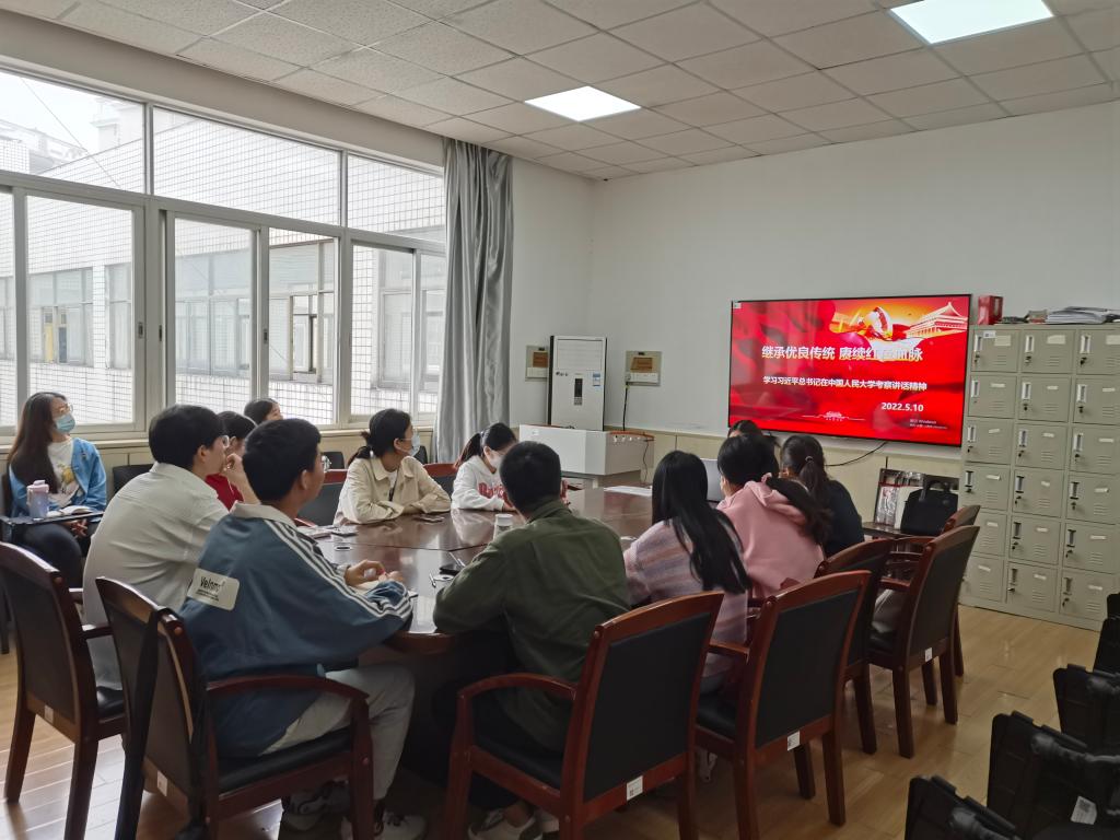 党课结束后,支部同志展开了激烈的讨论。吴彩虹同志认为习近平总书记在中国人民大学的讲话为广大青年指明了方向:“要做社会主义核心价值观的坚定信仰者、积极传播者、模范践行者,向英雄学习、向前辈学习、向榜样学习,争做堪当民族复兴重任的时代新人,在实现中华民族伟大复兴的时代洪流中踔厉奋发、勇毅前进。”支部同志纷纷表示作为新时代的中国青年,一定会以实现中华民族伟大复兴为己任,不负时代,不负韶华,不负党和人民的殷切期望。