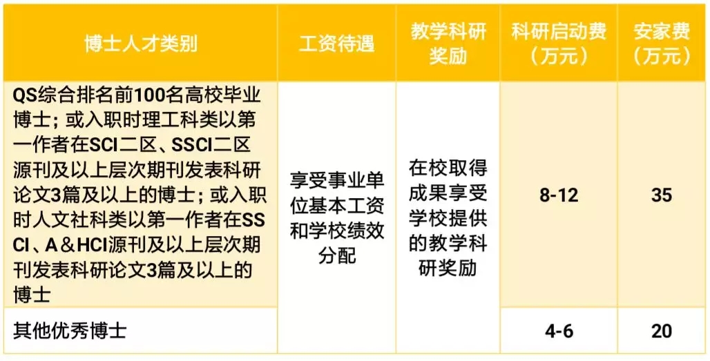 3.博士后年薪不低于14-16万元,享受“五险一金”,在校取得的成果可享受学校提供的科研奖励;提供过渡性住房保障,为师资博士后提供科研启动费2-6万元,支持优秀博士后留校任教。 |