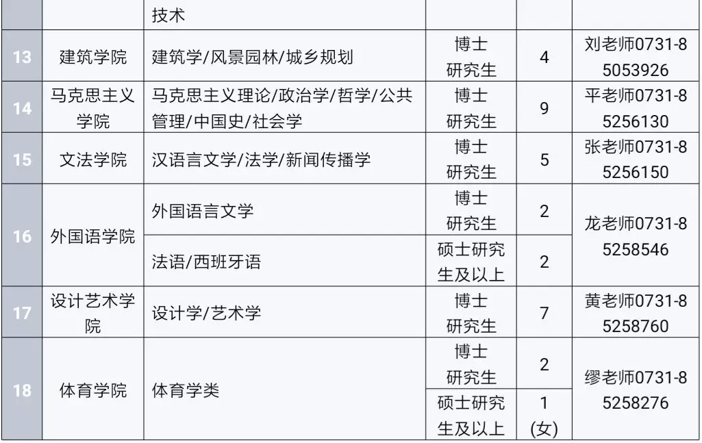 2.专任教师薪酬待遇按事业单位工资体系和学校绩效分配制度执行,在校取得的成果可享受学校提供的教学科研奖励;为优秀博士人才提供相应的安家费和科研启动费,并提供过渡性住房保障。进校后,业绩成果突出的可聘至“湖湘学者”特聘岗位并享受相应待遇。 |