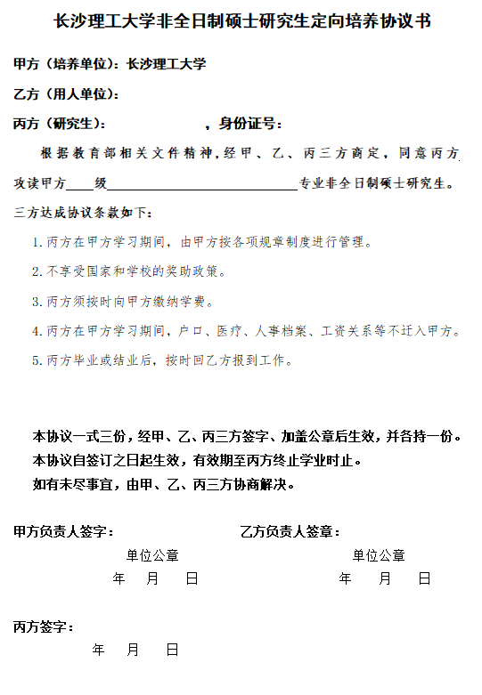 威廉体育williamhill非全日制硕士研究生定向培养协议书