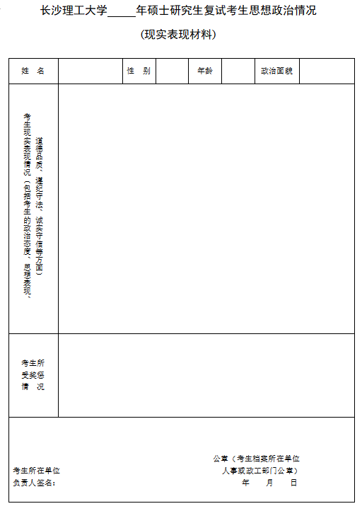 威廉体育williamhill硕士研究生复试考生思想政治情况(现实表现材料)