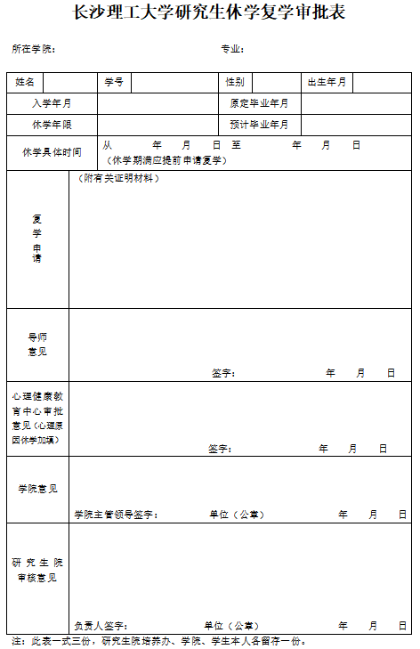 威廉体育williamhill研究生休学复学审批表