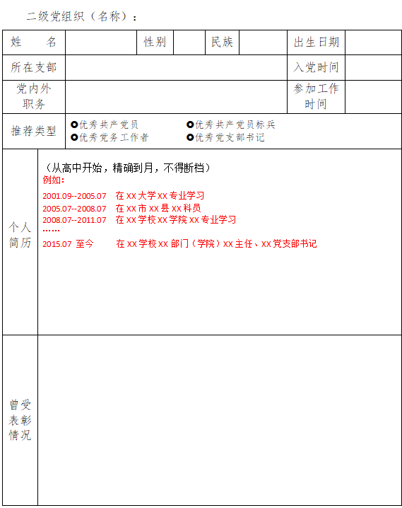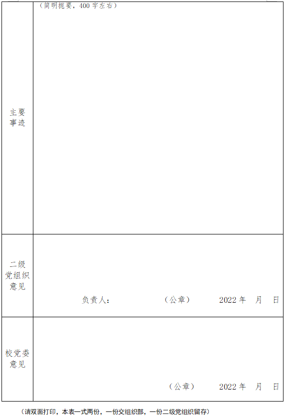威廉体育williamhill优秀共产党员、优秀共产党员标兵、 优秀党务工作者、优秀党支部书记推荐审批表