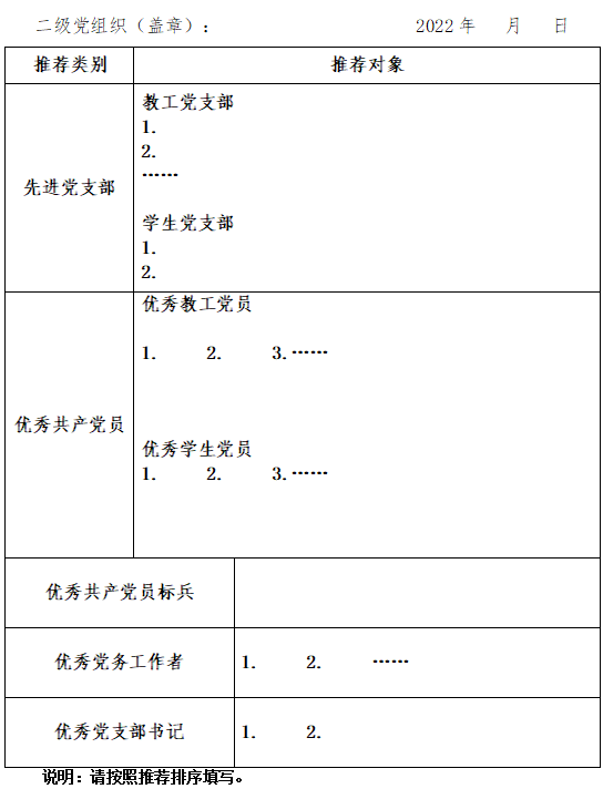 二级党组织推荐情况汇总表