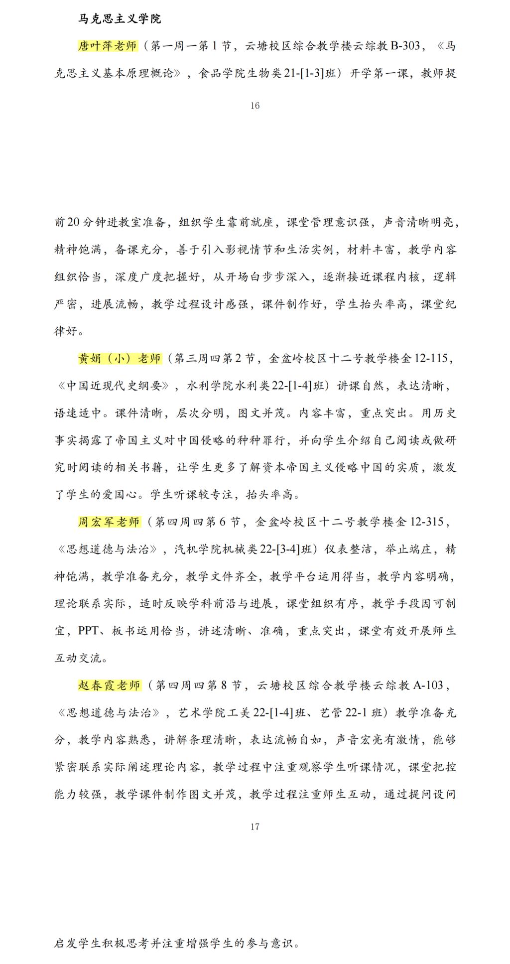 4月30日,威廉体育williamhill发布《本科教学督导信息》(23年第一期)简报。我院唐叶萍、黄娟(小)、周宏军、赵春霞、罗月婵、卿定文等六位教师获评威廉体育williamhill“课堂教学优秀典型”。