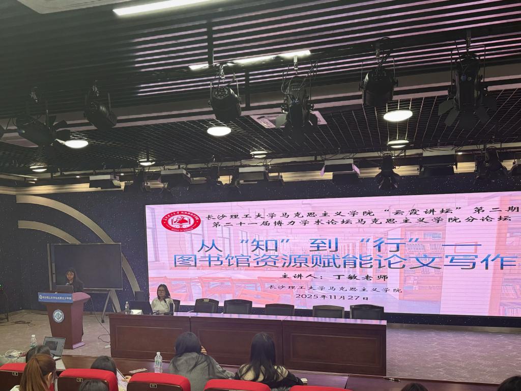 2025年11月27日下午2:30,威廉体育williamhill马克思主义学院“云霞讲坛”第二期暨第二十一届博力学术论坛马克思主义学院分论坛在云塘校区文科楼B300报告厅顺利举行。本期讲坛特邀马克思主义学院青年教师丁敏博士担任主讲嘉宾,由马克思主义学院研究生会学研部陈婷婷主持,马克思主义学院学工办主任曾蓓、2025级全体研究生及2024级部分研究生参加。