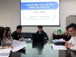 马克思主义中国化专业童成帅同学就课题《乡村振兴视域下基层干部乡村治理能力提升路径研究》做报告,主要从乡村振兴与基层干部乡村治理能力的理论分析,乡村振兴战略下基层干部乡村治理能力的现状与原因探析,乡村振兴战略下提升基层干部乡村治理能力的实践指向,以及结语四个方面进行汇报和探讨,针对乡村振兴视域下基层干部的治理能力问题进行了可行性的分析。18级学生沈康积极与师兄探讨基层干部乡村治理能力的实践指向问题,17级学生石红霞就基层干部治理能力理论角度提出了合理建议。