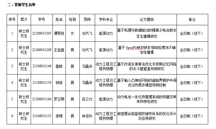 2024年能源与动力工程学院研究生学位论文答辩安排(一)