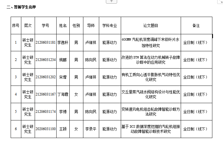 2024年能源与动力工程学院研究生学位论文答辩安排(二)