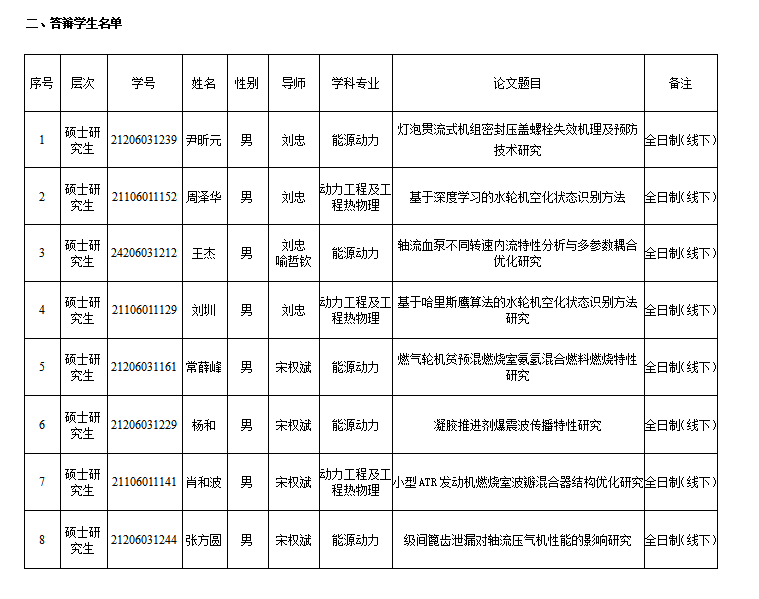 2024年能源与动力工程学院研究生学位论文答辩安排(三)