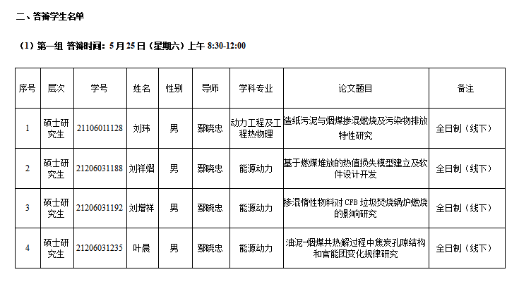 2024年能源与动力工程学院研究生学位论文答辩安排(十七)