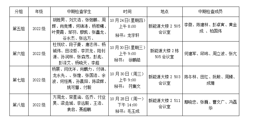 能动学院2022级硕士研究生中期筛选及中期检查考核安排表5-8