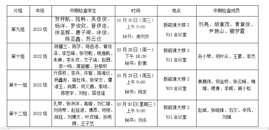 能动学院2022级硕士研究生中期筛选及中期检查考核安排表9-12