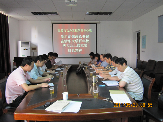 5月20日上午,能源与动力工程学院党委中心组召开专题扩大会议,学习胡锦涛总书记在清华大学百年华诞庆祝大会上的重要讲话精神。学院党委成员,各党支部书记参加了学习。