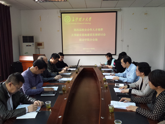 4月18日,能源与动力工程学院在金盆岭校区四号教学楼召开校企合作人才培养研讨会。大唐华银电力新能源公司、大唐华银株洲电厂、湘电集团风能有限公司、格力空调湖南分公司等企业代表受邀参加研讨会。会议由能动学院副院长周鹏展主持。能动学院领导班子全体成员及教研室主任参加会议。