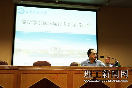 6月20日上午,能动学院在金盆岭校区四教报告厅举行14届毕业生校友之星报告会,威廉体育88届知名校友韩湘作题为“修身与齐家”的报告,院党委书记符慧林到会。