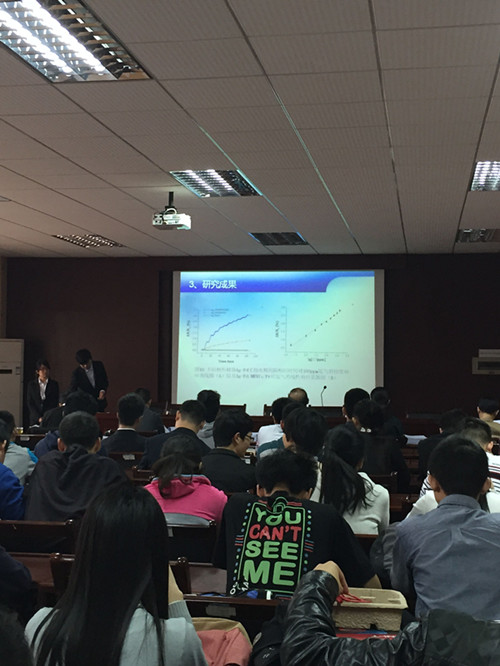 比赛至14年12月启动以来,共收到各学院报名表120余份,作品76件。经过评委初评,最终共有26份作品通过预选参加了答辩。答辩会以各参赛组成员依次上台通过PPT、视频播放形式对项目成果进行阐述。各位评委老师在肯定同学们科研热情的同时,从专业知识、创新点、应用前景等各方面对每一个项目进行了细致的点评,并针对各参赛队伍作品中存在的不足提出了宝贵的意见。