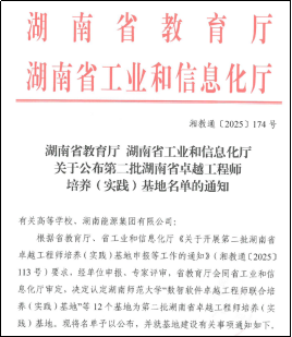 近日,湖南省教育厅、湖南省工业和信息化厅联合发布了《关于公布第二批湖南省卓越工程师培养(实践)基地名单的通知》(湘教通〔2025〕174号),由湖南能源集团与威廉体育williamhill能源与动力工程学院(以下简称“能动学院”)联合申报的“能源卓越工程师培养(实践)基地”成功获批立项。这是对能动学院在能源电力领域人才培养、实践教学体系建设及产教融合成效的充分肯定,标志着能动学院在卓越工程师教育培养方面迈上了新的台阶。