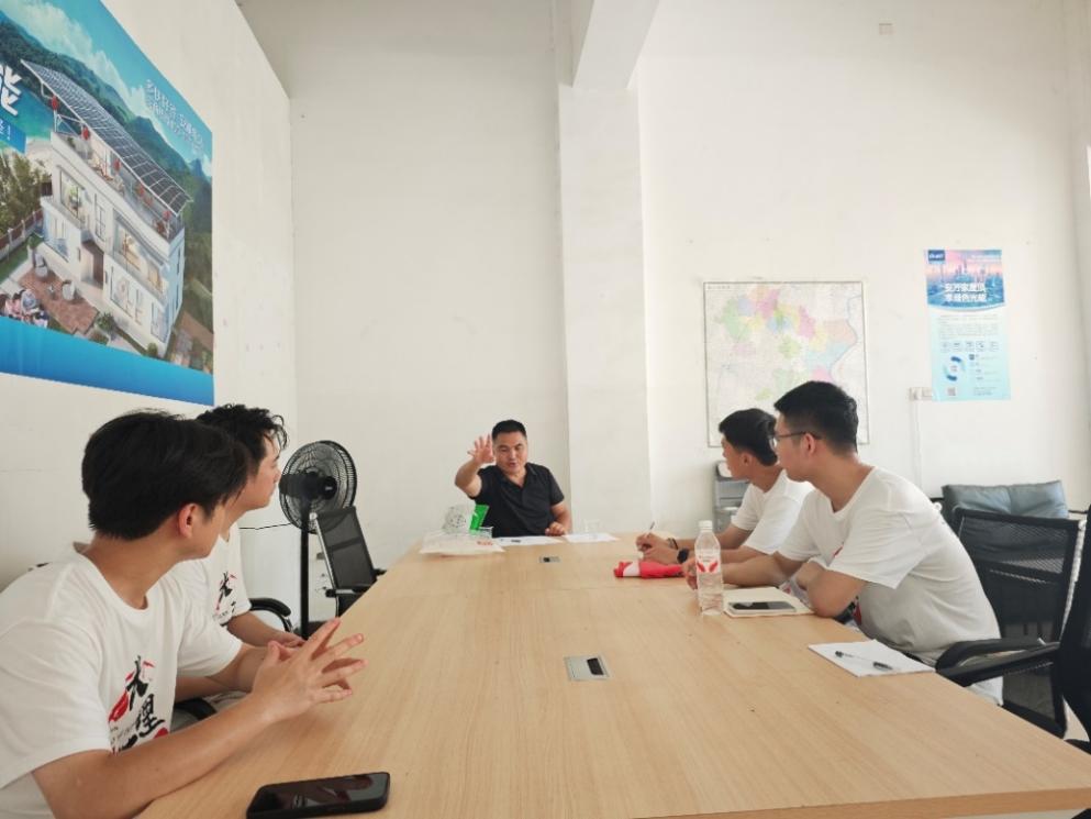 实践团最后走访了当地光伏企业,负责人的分享勾勒出产业发展的另一重图景:在政府政策加持下,光伏技术已日趋成熟,大型企业的光伏设备稳定性与发电效率均达行业前列,“农光互补”、“屋顶光伏”等模式的经济效益初显。但部分村民对光伏政策不了解、对企业缺乏信任,甚至拒绝参与项目。为此,企业组建宣传队,定期进村入户普及光伏知识、解读补贴政策,用实地案例消解疑虑——“让村民亲眼看到板下的作物长得好、电表上的收益在增加,比什么都管用。”