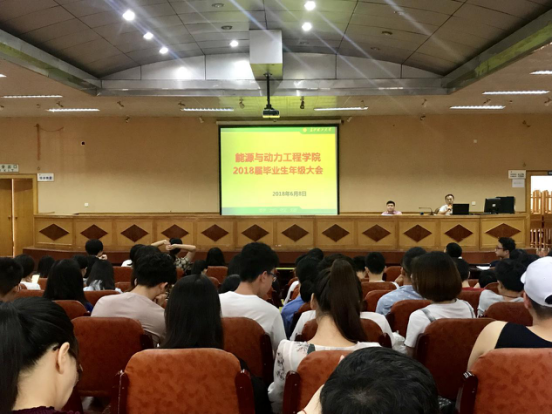 6月8日上午,能动学院2018届毕业生年级大会在四教报告厅召开,院领导杨雪峰副书记,全体2018届毕业生参与本次大会,2014级辅导员胡琳琳老师主持。