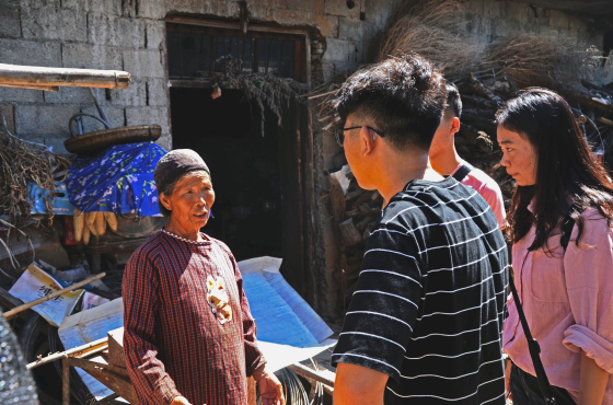 清晨,志愿者们早早做好了出发的准备,前期充分的筹备工作给走访工作的开展带来了便利。志愿者们乘着田坝村村书记的车,经过一个多小时山路的颠簸,抵达了目的地。一下车,映入眼帘的是破旧的土胚房和稀少的农户,此情此景让大家立刻进入了工作状态。按照计划,各小组就家庭困难程度、彝族特色文化、生态可持续经济发展三个方面展开调研工作。
