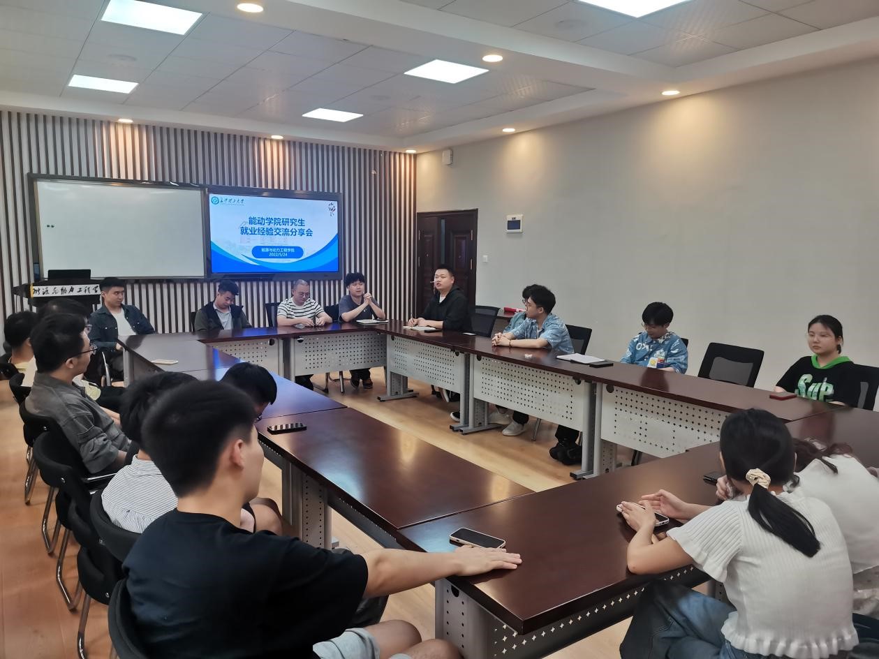 5月24日下午2:30,我院在新能源大楼505会议室举行了能动学院研究生就业经验交流分享会,邀请了程明亮、曾子竞、张维、何旭四位研三的师兄分享求职经验,由能动学院研会主席文科主持,活动吸引了众多研二的同学参与。