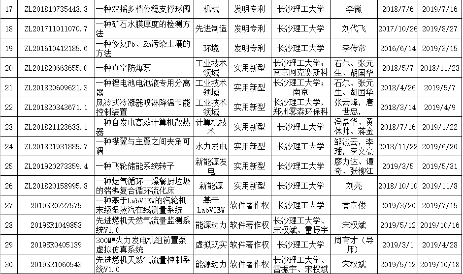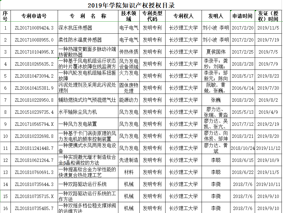 2019年学院知识产权授权目录