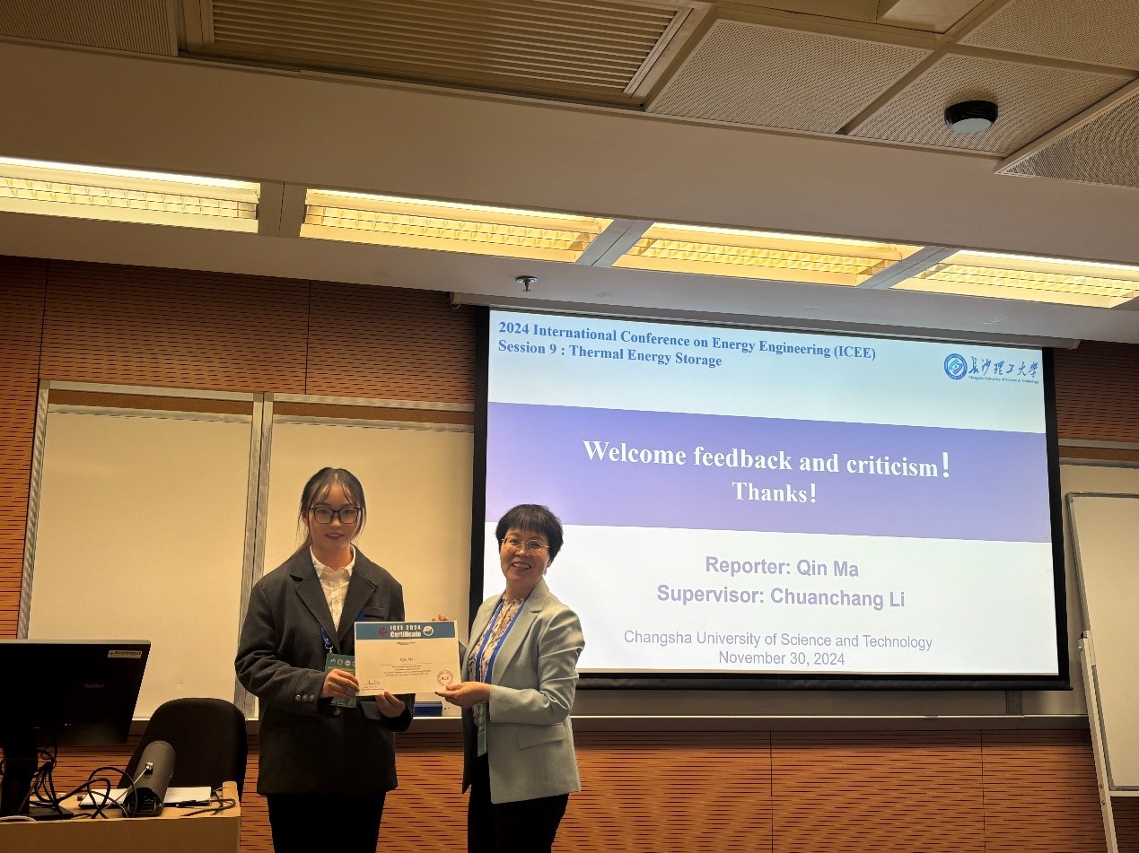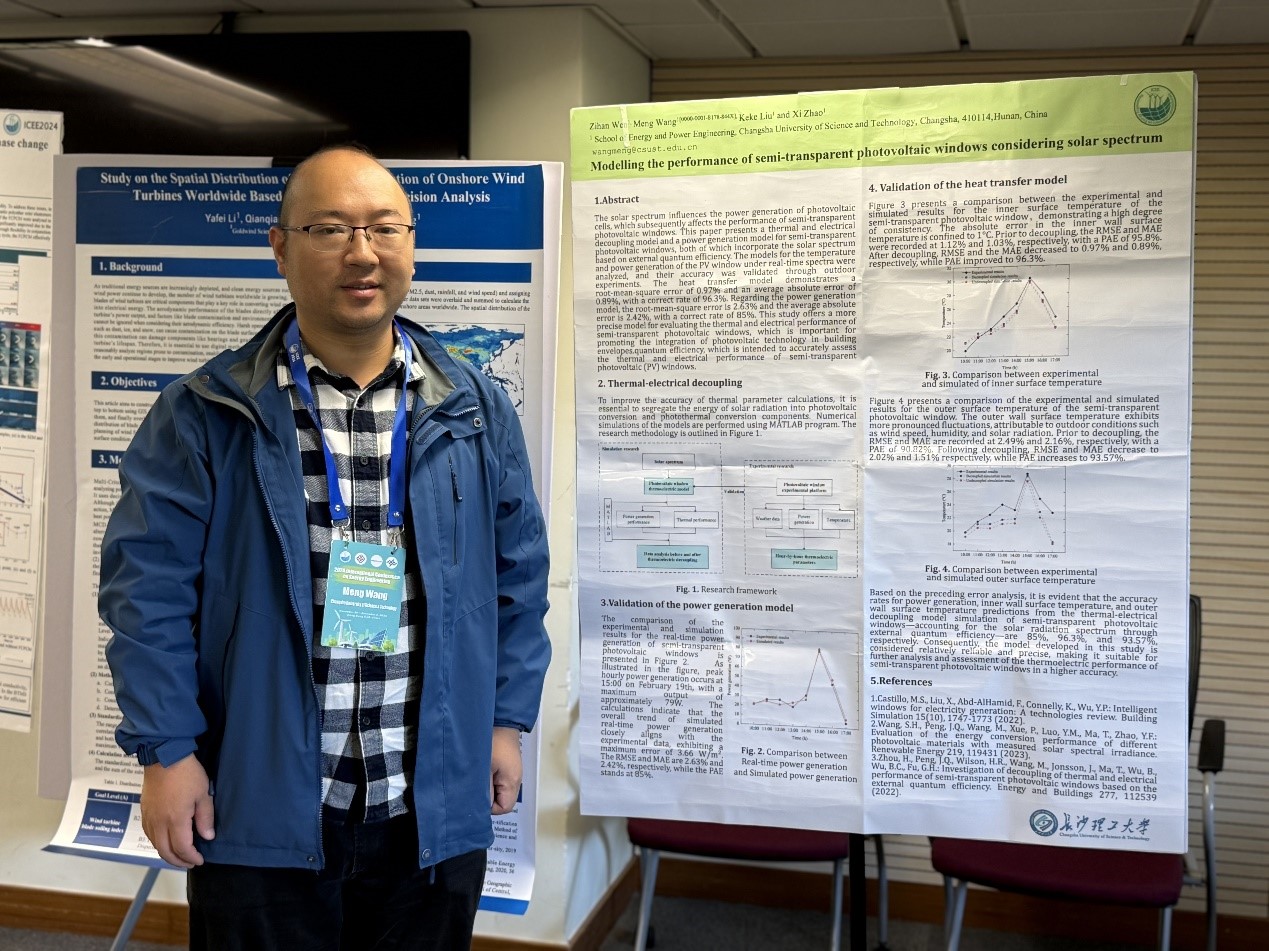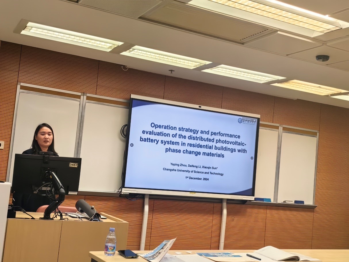 孙小琴教授主持分会场Session 18: Energy storage for energy-efficient buildings并作“Operation strategy and performance evaluation of the distributed photovoltaic-battery system in residential buildings with phase change materials”学术报告;谢宝珊博士主持分会场Session 9: Thermal Energy Storage并作题为“Mineral-based composite phase change material for packed bed thermal storage system”学术报告;王蒙博士于Poster Session展示“Modelling the Performance of Semi-Transparent Photovoltaic Windows Considering Solar Spectrum”研究进展;李传常教授课题组研究生马芹、肖夏琛分别作题为“Ternary Eutectic Phase Change Cold Storage Materials for Cold Chain Transportation of Aquatic Products”、“Fabrication of Optimized PAN/PEG-BNNS Nanofiber Membranes for High-Performance Thermal Management via Electrospinning Technology”学术报告。通过此次会议,我院师生深入交流并学习了能源技术领域的科学前沿与研究热点,不仅拓展了其学术眼界也提升了科研水平。