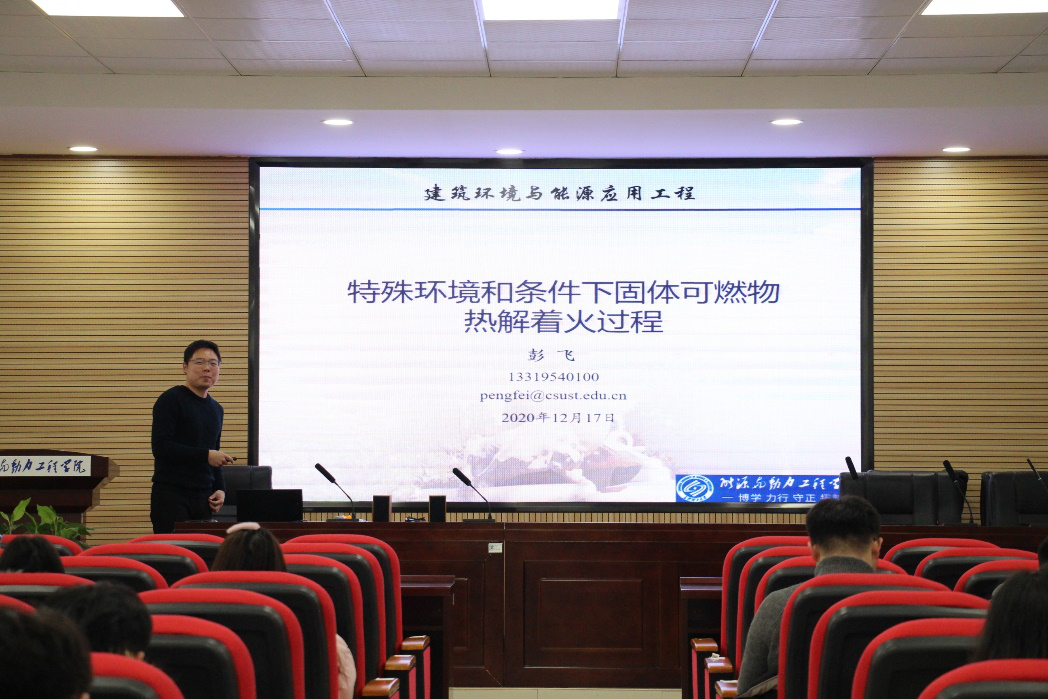 第二部分,由彭飞博士进行报告,报告内容为:特殊环境和条件下固体可燃物热解及着火过程。